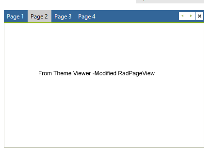 I have created a custom theme in the Visual Style Builder for the RadPageView, built off TelerikMetro as a base . I can view it in the Theme Viewer and it looks exactly like I want it. I then save just the resource file that ends with _RadPageViewStripElement.xml (I intend to only use it for View Mode = strip).