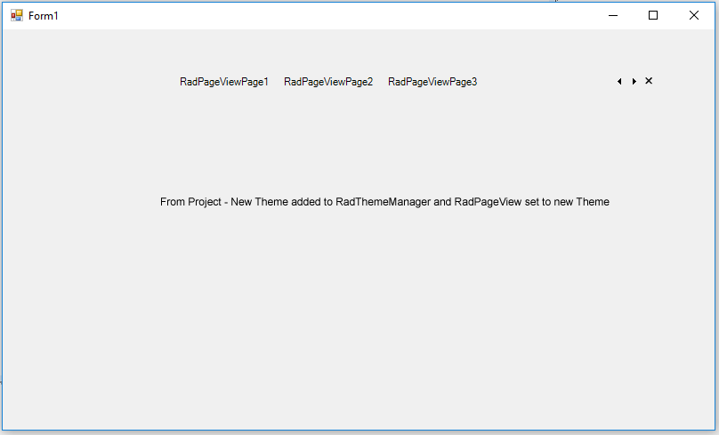 I then follow exactly the steps to add it to a VS2017 VB Winforms application under the RadThemeManager. I tried to add it both as Resource or a File. After I do, I can add a RadPageView to the form and when selecting a theme, I can see my new theme in the dropdown. However, I get no formatting.