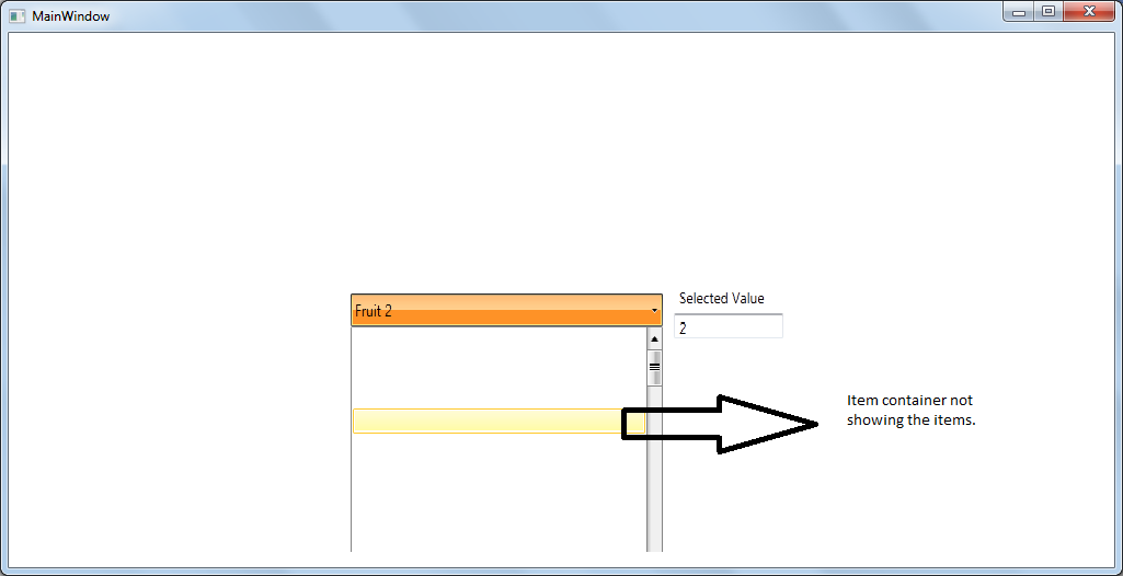 And also I am able to achieve this one perfectly. But what the problem I am facing now is - The ComboBox items are not getting displayed in the container. Please help me out in resolving this.
