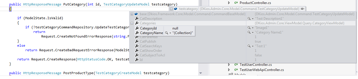and in the code behind(Web APi)when I trying to capture in the model it shows like this(Plz check the attachment)