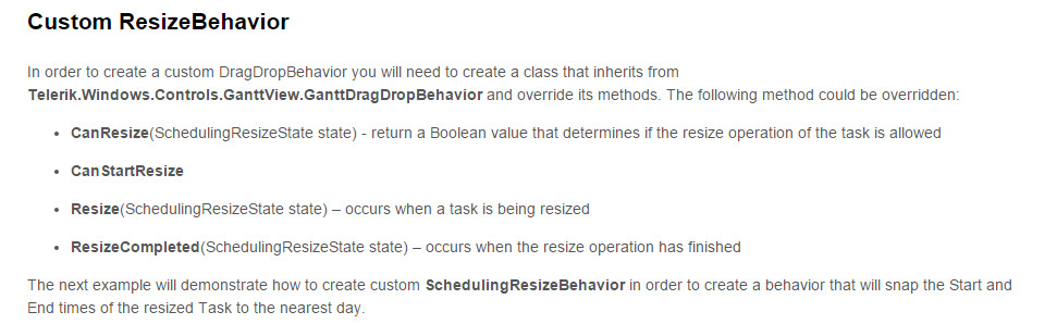 I want to trigger the event when completing the Resize operation on a Custom GanttTask.