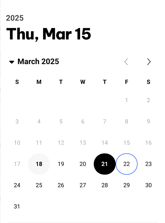 - Selected Date customizable (Black color background and white color text)