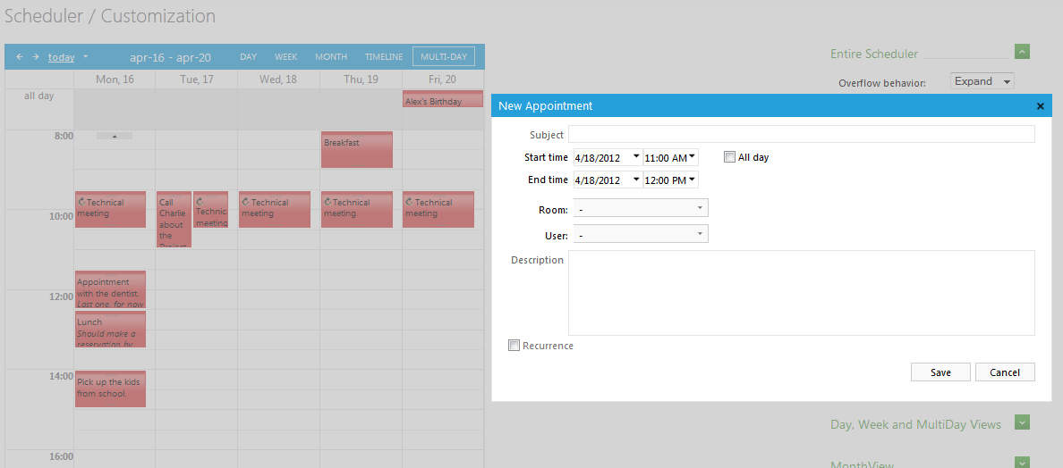 So, When you click on an appointment the behavior the advanced form will not pop up or not hide scheduler to show only the advanced form. will show both in the same page advanced form + scheduler)