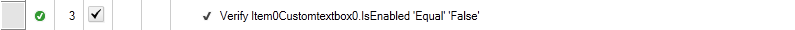 [CodedStep(@"Verify Item0Customtextbox0.IsEnabled 'Equal' 'False'", RequiresSilverlight = true)]public void DatalogPreferencePage_Functionality_CodedStep15(){ // Verify Item0Customtextbox0.IsEnabled 'Equal' 'False' Assert.AreEqual(false, Pages.PC5xxLogin.SilverlightApp.Item0Customtextbox0.IsEnabled, string.Format("Verify Item0Customtextbox0.IsEnabled \'Equal\' \'False\' failed. Actual value \'{0}\'", Pages.PC5xxLogin.SilverlightApp.Item0Customtextbox0.IsEnabled));}I have verified the Element explorer for the Element