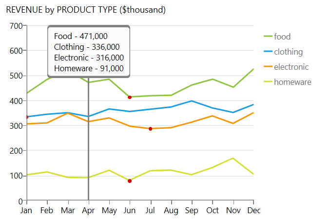 - ToolTip - Basically, when you hover a data point the chart the chart visualize arbitrary information related to it.