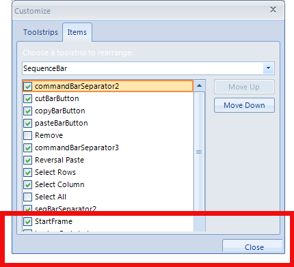 public class MyCommandBarDialogProvider : CommandBarCustomizeDialogProvider { public override Form ShowCustomizeDialog(object sender, CommandBarStripInfoHolder infoHolder) { CommandBarCustomizeDialog dialog = new MyCommandBarDialog(infoHolder); RadElement senderElement = sender as RadElement; RadControl senderControl = sender as RadControl; if (senderControl == null && senderElement != null && senderElement.ElementTree != null) { senderControl = senderElement.ElementTree.Control as RadControl; } if (sender is CommandBarStripElement) { dialog.stripsListControl.SelectedValue = sender; dialog.radPageView.SelectedPage = dialog.toolstripItemsPage; } else if (sender is RadCommandBar) { dialog.radPageView.SelectedPage = dialog.toolstripsPage; } if (senderControl != null) { dialog.ThemeName = senderControl.ThemeName; dialog.RightToLeft = senderControl.RightToLeft; } else if (senderElement != null) { dialog.RightToLeft = senderElement.RightToLeft ? RightToLeft.Yes : RightToLeft.No; } if (OnDialogOpening(dialog)) { return null; } OnDialogOpened(dialog); dialog.ShowDialog(); return dialog; } }The inherited dialog: