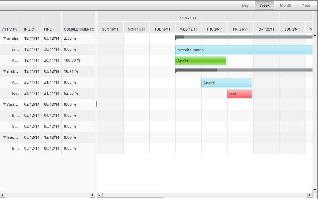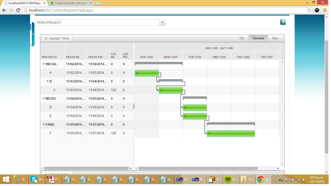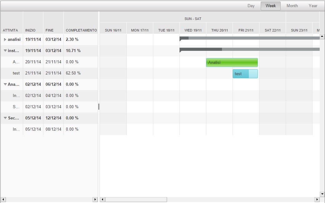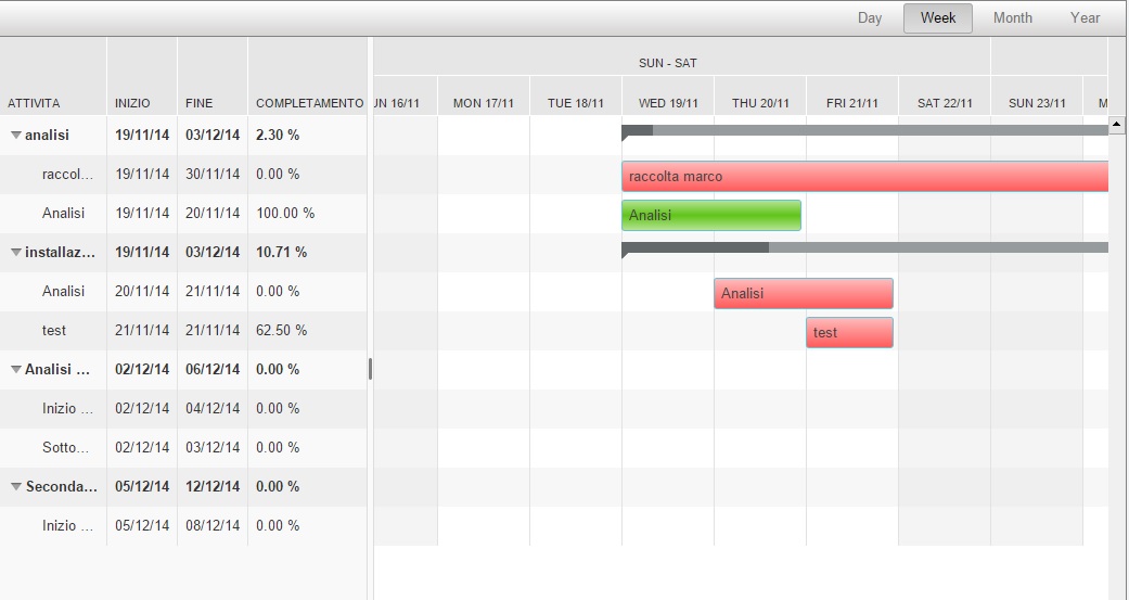 en adjunto algunas imágenes de como se comporta el gantt.