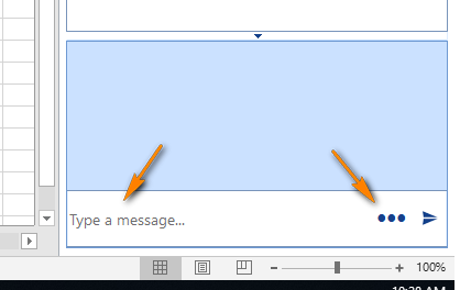 In order to change the "Type a message" text in the input box you can set the ChatElement.InputTextBox.TextBoxItem.NullText property to the desired string. As to the three dots of the right side you can hide it by setting the ChatElement.ShowToolbarButtonElement.Visibility property to Collapsed.