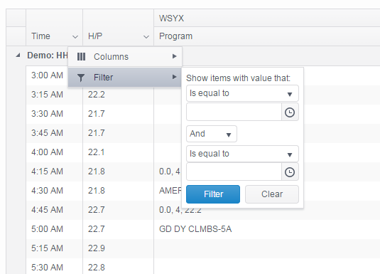 I can get the basic time filter working fine, but I want to customize the options. (e.g. the first time picker I want to be "GTE" and the second time picker to be "LTE", and the operator to be AND only.) I also want to specify the header text (e.g. where it says "Show items with value that:")