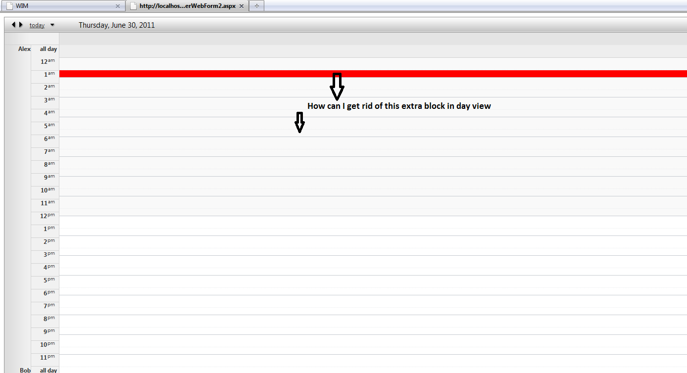 Thank you very much for the sample code and helping me solve this issue. In your sample code on Dayview each timeslot has two rows and when you hover only one block gets highlighted. How can I show only one block for each time slot/ highlight both on hover.