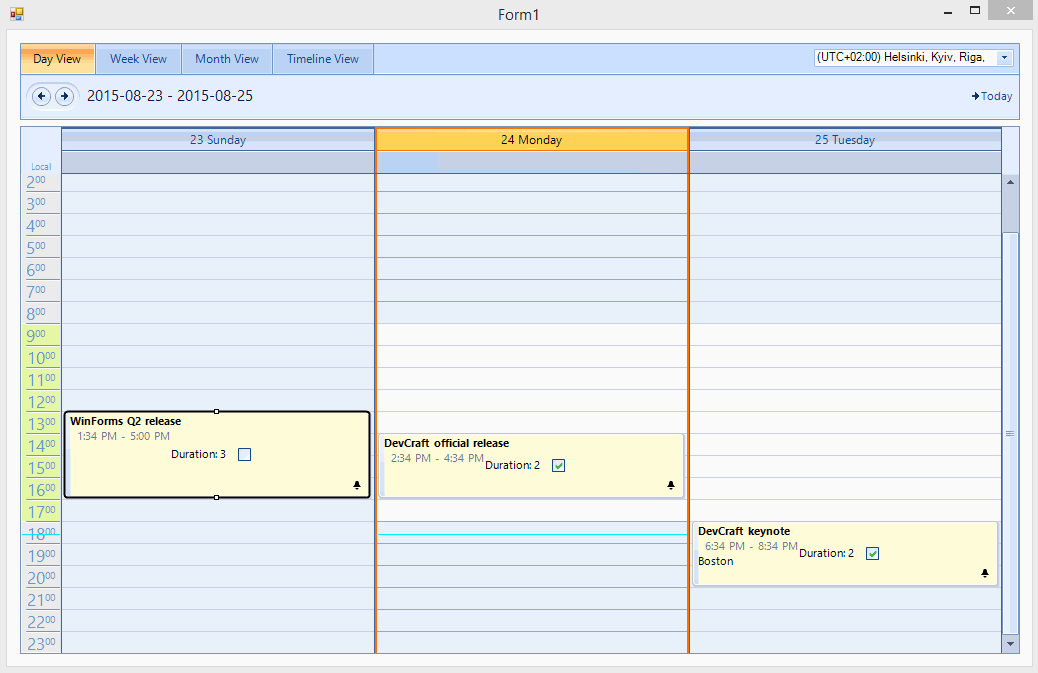 I would use RadScheduler in an application to show and edit work shifts. I'm using Telerik Q2 2015, Visual Studio 2013.