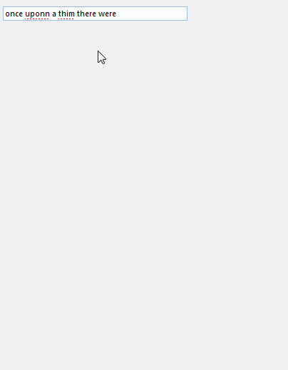 public Form1(){ InitializeComponent(); this.radSpellChecker1.AutoSpellCheckControl = this.radTextBox1; this.radTextBox1.TextBoxElement.TextBoxItem.HostedControl.MouseDown += HostedControl_MouseDown; this.radTextBox1.TextBoxElement.TextBoxItem.HostedControl.ContextMenuStrip = this.contextMenuStrip1; TextBoxSpellChecker tbSpellChecker = this.radSpellChecker1.GetControlSpellChecker(typeof(RadTextBox)) as TextBoxSpellChecker; if (tbSpellChecker != null) { tbSpellChecker.DropDownMenu.PopupOpening += DropDownMenu_PopupOpening; }}private void HostedControl_MouseDown(object sender, MouseEventArgs e){ if (e.Button == MouseButtons.Right) { //if no errors exist, show the RadContextMenu TextBoxSpellChecker tbSpellChecker = this.radSpellChecker1.GetControlSpellChecker(typeof(RadTextBox)) as TextBoxSpellChecker; Regex wordParser = new Regex("[\\p{L}\\p{N}\\p{M}]+(?:[-.'´_@][\\p{L}|\\p{N}|\\p{M}]+)*", RegexOptions.Compiled); Telerik.WinControls.RichTextBox.Proofing.DocumentSpellChecker checker = tbSpellChecker.SpellChecker as Telerik.WinControls.RichTextBox.Proofing.DocumentSpellChecker; bool containsError = false; foreach (Match word in wordParser.Matches(this.radTextBox1.Text + "")) { if (!checker.CheckWordIsCorrect(word.Captures[0].Value)) { containsError = true; break; } } if (!containsError) { Point p = (sender as Control).PointToScreen(e.Location); radContextMenu1.Show(p.X, p.Y); } }}private void DropDownMenu_PopupOpening(object sender, CancelEventArgs args){ //cancel it if you do not want the pop up with suggestions to show args.Cancel = true;}I hope this information helps. Should you have further questions, I would be glad to help.