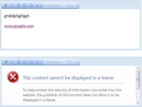 But after using your OnClientModeChange event, the links in the editor opens up in that iFrame only instead of in a new window. Can you please suggest me something where the default styling is maintained in the editor in Preview mode and links in the editor opens in a window.