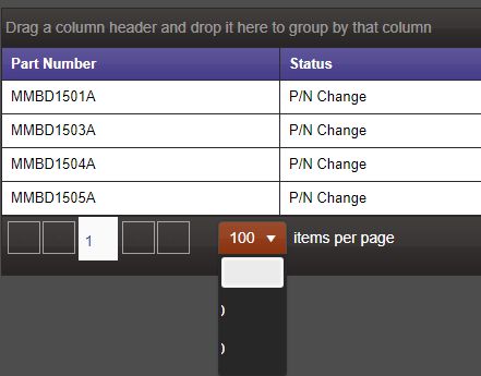 2) As you can see from the screen shot when you drop down to set the pager size the size selections are shifted to the left. And when you select a smaller size, (i.e. 100 down to 10) the drop down fails to drop down again and freezes.