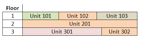 I'm just getting started in telerik charting, and I'm tasked with trying to produce a real-estate stacking plan. It's a fairly industry-standard chart that is essentially a zero-gap "StackedBar100" chart, where the items are rentable units, grouped by floor, proportioned by rentable area. So, for example, the attached data would produce, roughly, the attached chart. (The colors will be set item by item, based on other data, and the floors will be reversed, high to low, to mimic the building layout.)