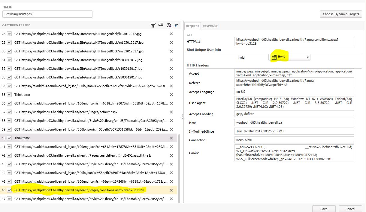 Please see the attachments below if they make anything clear to you. "HWIds.csv" is the file that I am binding with this load test. ".DataBinding.jpg" is the screenshot showing to what step I am binding the data from the file.