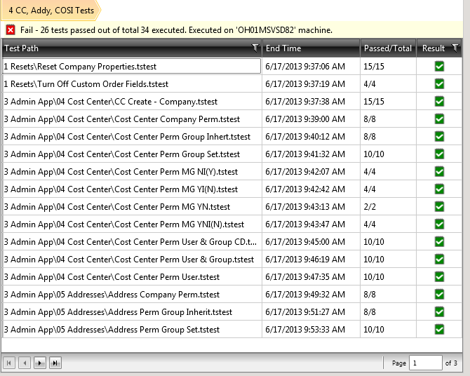 "Because of test studio's limit of 17 tests" Um, let me ask where do you get this limit from? It's no where in our documentation. It's very common to have 200-300 separate tests in a Test Studio test list. Many of our customers have large test lists like this. Granted that's a lot of tests go walk through and see which passed and which failed... but we do give you overviews of how many passed and failed.