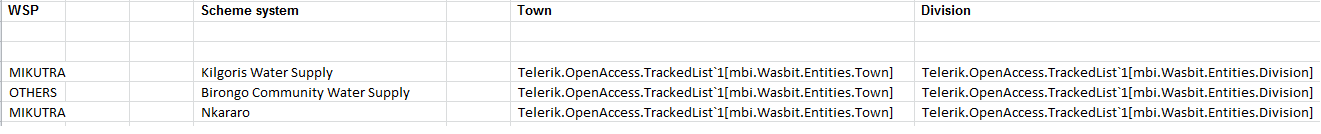 Problem comes when I export this data to an excel sheet or of I want to display this data in a report, the town and division name are not exported, I've attached an excel sheet to show how they are being outputted.