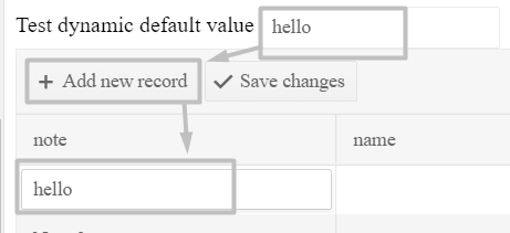 e.g. Notes: { defaultValue: "Test Template Name" }