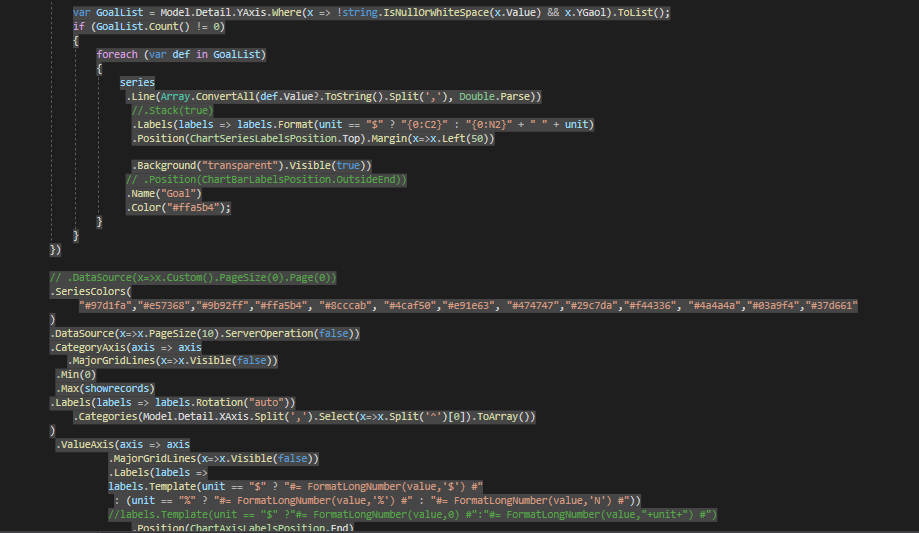 I have facing some issue in bar chart. Actually data is too long in chart so i have assign category axis maximum showing 10 records but each record exits on many data so my graph is not open in zoom mode.