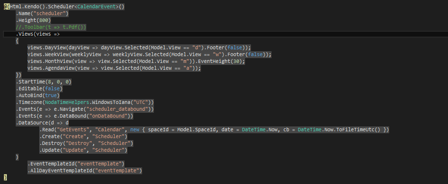 This is driving me crazy... I want to do some formatting on the cell that is housing the .k-event after the databound event is triggered. However, it's triggered 3 times every time the page is loaded or I navigate to a new time. Any idea why this is happening?