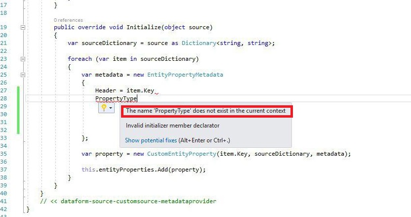 propertytype atribiute in the initialize method in the CustomMetadataProvider