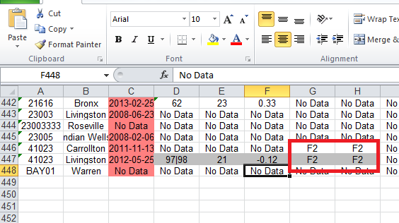 Im getting a text called F2 displayed in excel.