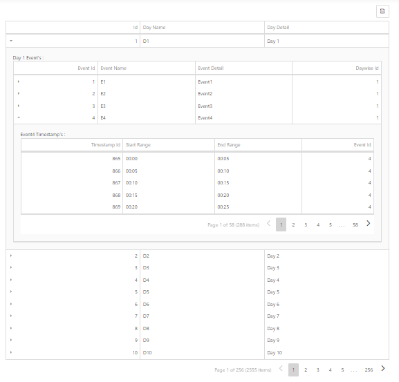 I have the scenario where I have to implement a three-layered master-detail as shown in the snapshot.