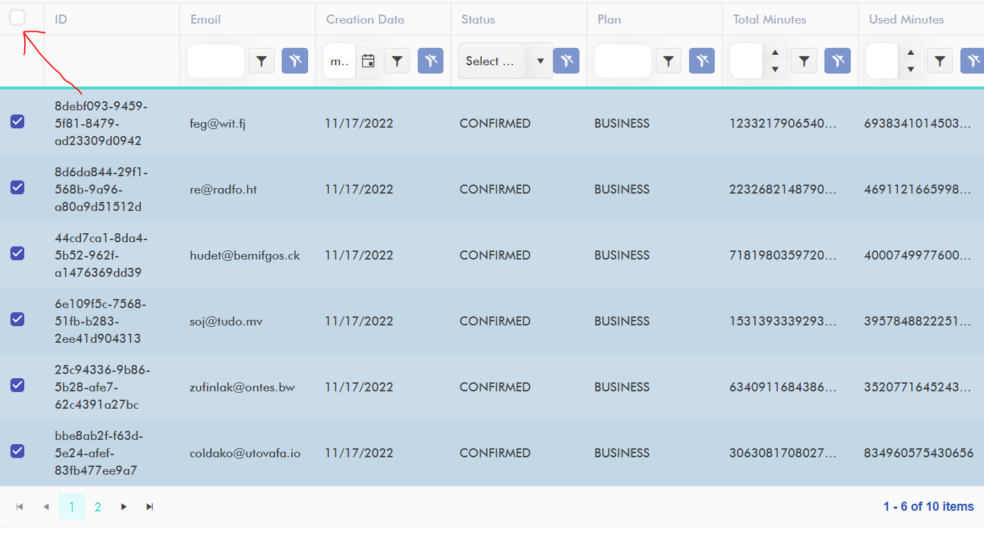 Hi Vessy, I've made that demo paginated, check the header selection button here https://stackblitz.com/edit/react-v7yj55?file=app%2Fmain.jsx