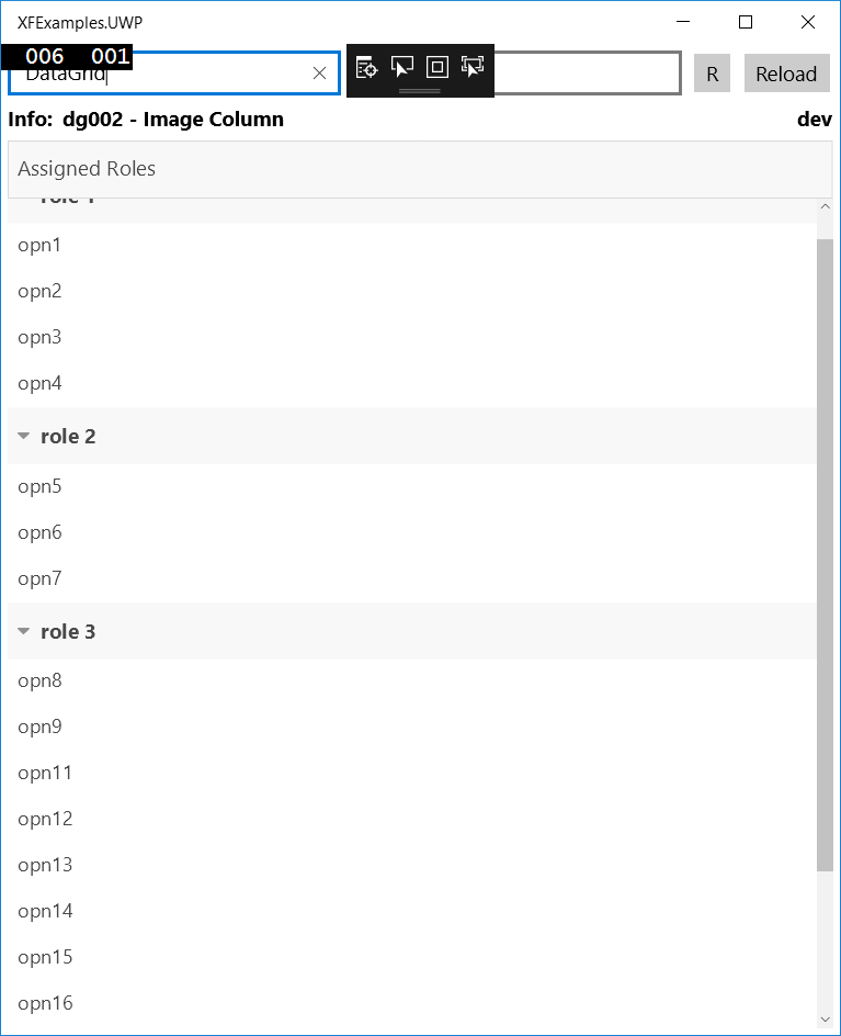 <telerikGrid:RadDataGrid AutoGenerateColumns="False" x:Name="AssignedRolesList" Grid.Row="1"> <telerikGrid:RadDataGrid.GroupDescriptors> <common:PropertyGroupDescriptor PropertyName="RoleName" /> </telerikGrid:RadDataGrid.GroupDescriptors> <telerikGrid:RadDataGrid.Columns> <telerikGrid:DataGridTextColumn PropertyName="OperationalPeriodName" HeaderText="Assigned Roles" /> </telerikGrid:RadDataGrid.Columns> </telerikGrid:RadDataGrid>