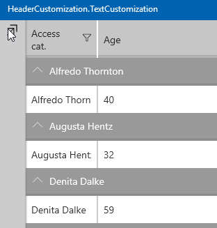 <telerikGrid:DataGridTextColumn PropertyName="Country" Header="Long Header Text" SizeMode="Fixed" Width="100" />