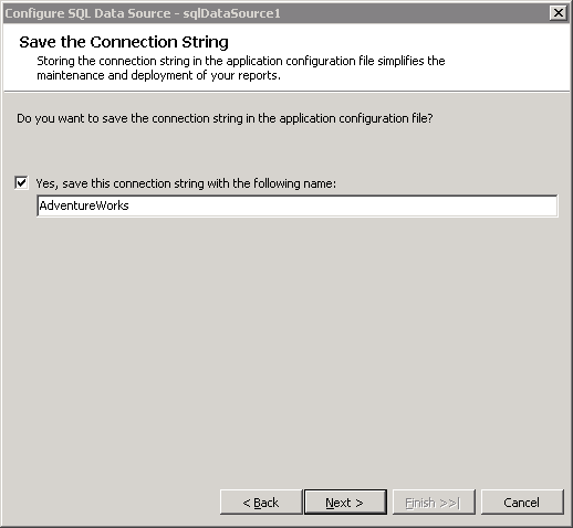- You can save the SqlDataSource connection string a)in the config file or b)in the edited report. This choices are represented in the SQL Data Source Configuration wizard.