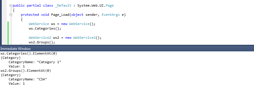 Two methods from different web services (.asmx) are giving some results back but first method is binding to template successfully but the other one is not. Please check the attachment for the files which clearly shows that web service1's method giving result as similar to web service2's method. The only difference is that web service 1 return data in IEnumerable<Category> format with the Category class name as data type whereas web service 2 did the same thing but it actually call the other external web service method to get the data, And also data is coming back from external web service and then I'll convert that data into IEnumerable<Category> format but this method's data is not binding to template. Only first web service method is binding to the template. So How can I bind 2nd web service method to template?