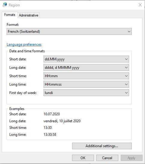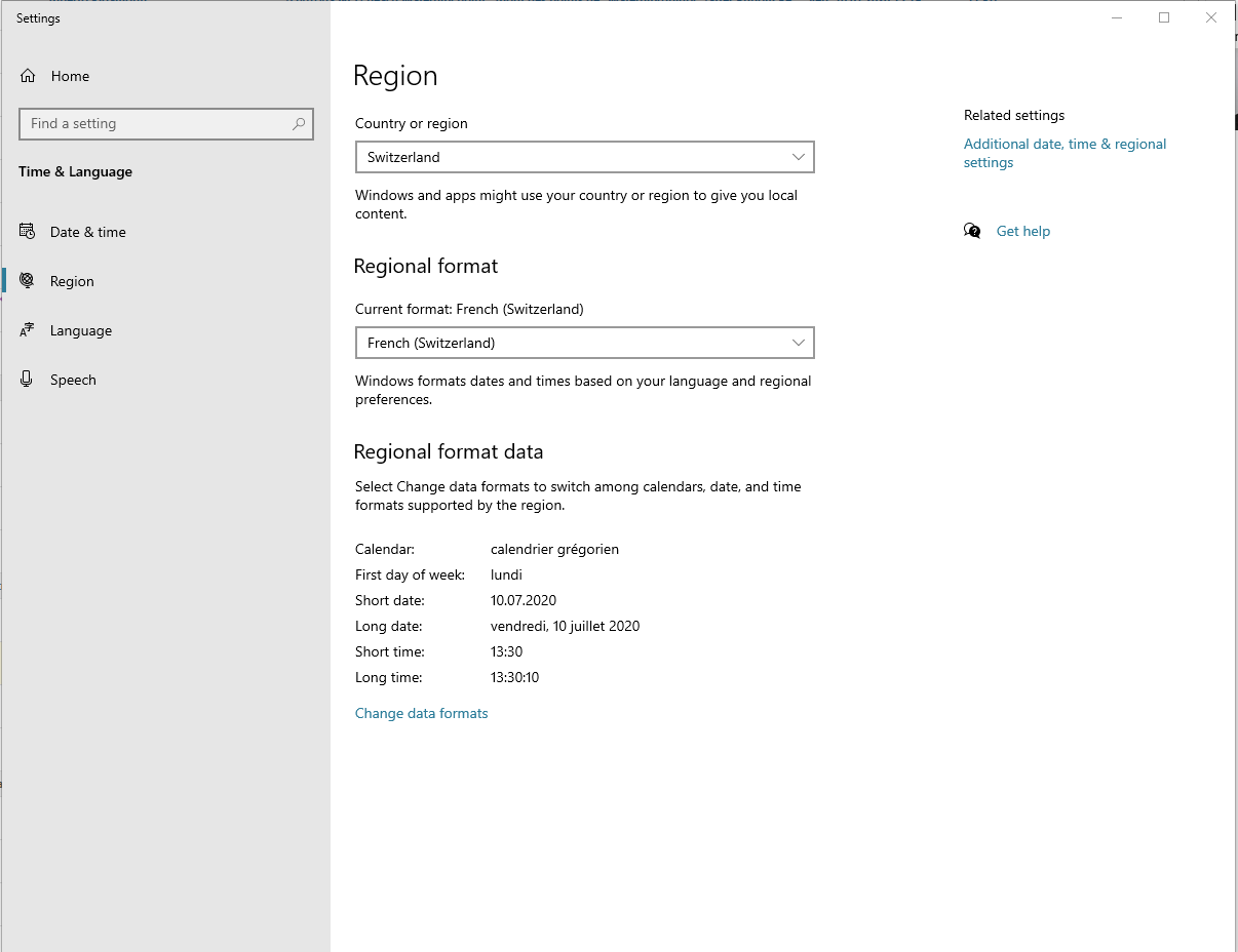 I have Windows 10 in English, but the date display in Swiss French.
