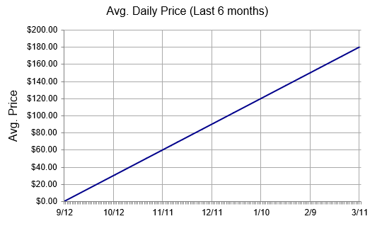 protected void Page_Load(object sender, EventArgs e){ if (!Page.IsPostBack) { AvgPriceChart.DataSource = GetChartData(); AvgPriceChart.DataBind(); }}protected DataTable GetChartData(){ DataTable tbl = new DataTable(); tbl.Columns.Add(new DataColumn("AveragePrice", typeof(decimal))); tbl.Columns.Add(new DataColumn("dates", typeof(DateTime))); for (int i = 0; i < 181; i++) { tbl.Rows.Add(new object[] { i, DateTime.Now.AddDays(i) }); } return tbl;}Regards,