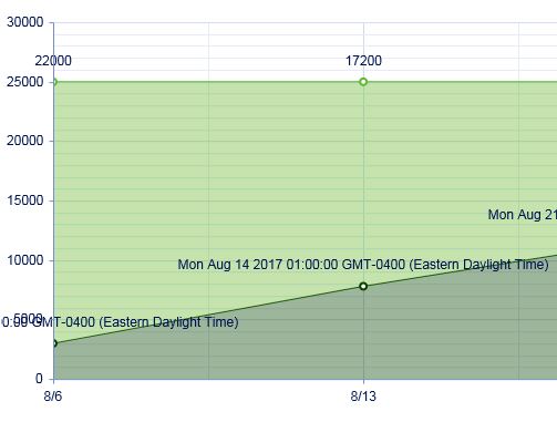 <telerik:RadHtmlChart ID="burndownChart" runat="server" DataSourceID="dsBurndown" Skin="Web20"> <PlotArea> <XAxis DataLabelsField="WeekDate"> </XAxis> <YAxis Name="$"> </YAxis> <Series> <telerik:AreaSeries AxisName="$" DataFieldY="Spent" Name="Spent" Stacked="True"> <LabelsAppearance Visible="true" DataField="WeekDate"></LabelsAppearance> </telerik:AreaSeries> <telerik:AreaSeries AxisName="$" DataFieldY="Remaining" Name="Remaining" Stacked="True"> </telerik:AreaSeries> </Series> </PlotArea> </telerik:RadHtmlChart>