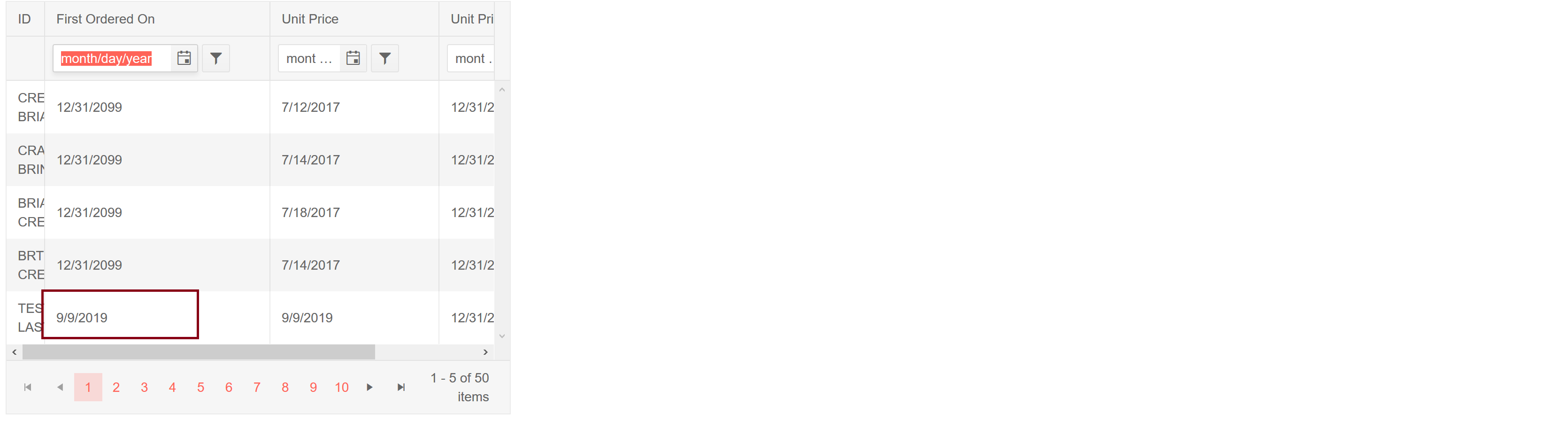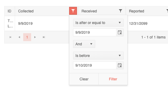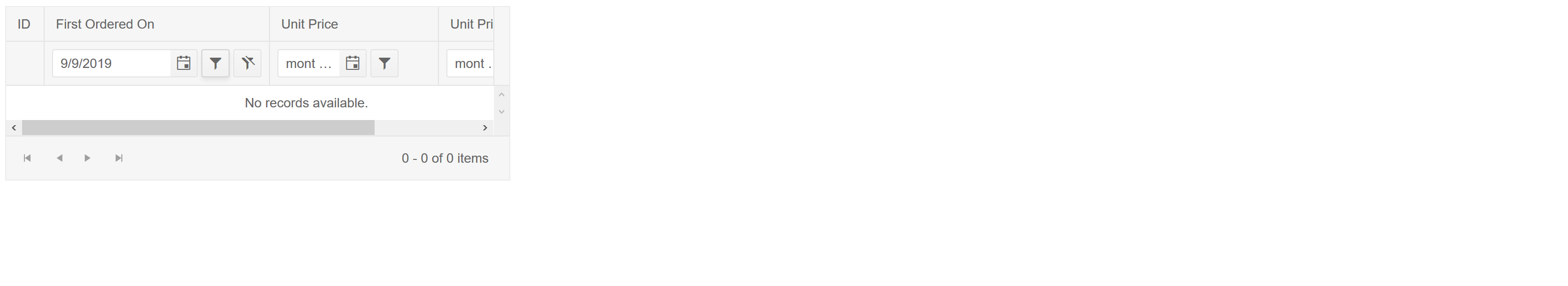 We have tried to bind the data and add the filters for date columns and its not working as expected. Our Datasoure returns the following Json Results, after calling the Process Method, its takes the following values and not binding property. If we take json data data and add it in .ts file, its binding properly and filter is not working.