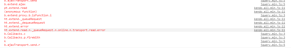 function FilterGridByText() { var text = $('#TextBox').val(); if (!text) { $("#TextBox").notify("You must enter a value to search for."); } else { window.openWait(); var dataSource = new kendo.data.DataSource({ schema: { model: { id: "Id", fields: { "Id": { type: "number" }, "Reference": { type: "string" }, "Owner": { type: "object" }, "ModifiedBy": { type: "number" }, "Date": { type: "date" } } } }, transport: { read: { url: '@Url.Action("Search", "Home")', type: 'POST', data: { text: text } } } }); var grid = $('#Grid').getKendoGrid(); grid.setDataSource(dataSource); window.closeWait(); } }0