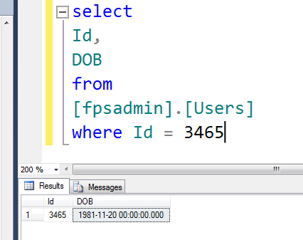 6. Now if you go back to the Index page you should see the DOB has decreased by 1 day.