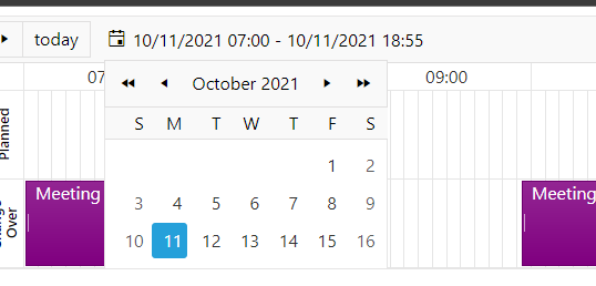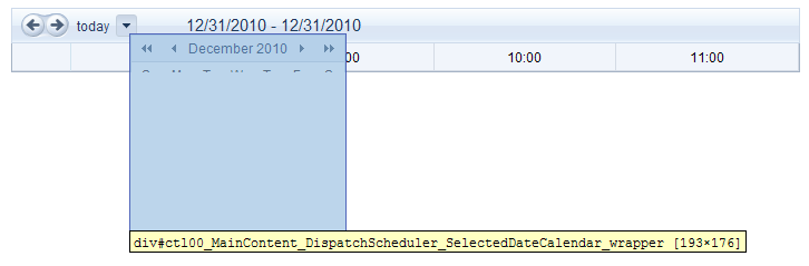Using the rad scheduler in timeline view and there appears to be a display bug with the date picker when no resources or appointments are loaded for the scheduler (see attached image). Essentially, the display of the date picker gets cut off. I am sure there is a style which can be overridden to ensure the picker displays properly, just can't seem to locate the right one.