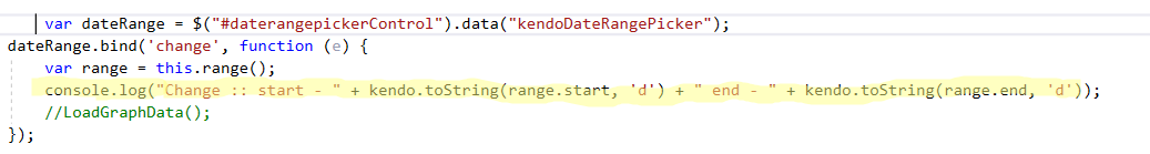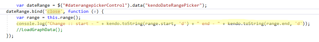 i'm using the daterange picker of the Kendo UI. and I want to call a function when the from date and to date both selected (up on closing may be)