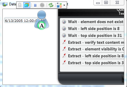 '7/13/2012 6:15:52 PM' - 'Fail' : 1. Extract 'x672005Textblock' text into DataBindVariable $(extractedDate)------------------------------------------------------------Failure Information: ~~~~~~~~~~~~~~~[Silverlight Extension Error] Details: ArtOfTest.WebAii.Silverlight.NoSuchPropertyException: Property 'Text' does not exist on the element at Telerik.TestingFramework.XamlExtension.ClientServices.GetRealProperty(AutomationReference reference, AutomationProperty property) at Telerik.TestingFramework.XamlExtension.ClientProcessor.ProcessCommand(String command)InnerException:ArtOfTest.WebAii.Silverlight.ExecuteSilverlightCommandException: [Silverlight Extension Error] Details: ArtOfTest.WebAii.Silverlight.NoSuchPropertyException: Property 'Text' does not exist on the element at Telerik.TestingFramework.XamlExtension.ClientServices.GetRealProperty(AutomationReference reference, AutomationProperty property)