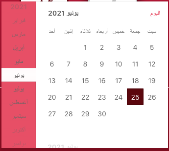 import { DatePicker } from '@progress/kendo-react-dateinputs';import { IntlProvider, LocalizationProvider, load, loadMessages,} from '@progress/kendo-react-intl';import currencyData from 'cldr-core/supplemental/currencyData.json';import likelySubtags from 'cldr-core/supplemental/likelySubtags.json';import numberingSystems from 'cldr-core/supplemental/numberingSystems.json';import weekData from 'cldr-core/supplemental/weekData.json';import caGregorian from 'cldr-dates-full/main/ar-SA/ca-gregorian.json';import dateFields from 'cldr-dates-full/main/ar-SA/dateFields.json';import timeZoneNames from 'cldr-dates-full/main/ar-SA/timeZoneNames.json';import numbers from 'cldr-numbers-full/main/ar-SA/numbers.json';import React, { Component } from 'react';import arMessages from '../config/kendo/ar-SA.json';import { AppDateInput } from './AppDateInput';import { AppPopup } from './AppPopup';loadMessages(arMessages, 'ar-SA');load( likelySubtags, currencyData, weekData, numbers, caGregorian, dateFields, timeZoneNames, numberingSystems);class AppDatePicker extends Component {render() { return ( <LocalizationProvider language='ar-SA'> <IntlProvider locale='ar-SA'> <DatePicker popup={AppPopup} dateInput={AppDateInput} defaultValue={this.props.defaultValue} onChange={this.props.onChange} /> </IntlProvider> </LocalizationProvider> ); }}see attached pic for result