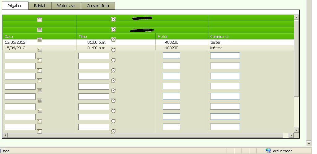 I have a RadGrid, used for data entry that has a DatePicker column and a TimePicker column, each having the associated icon to click for the correct pop-up Picker. There are several rows, so that the grid has to be scrolled vertically on occasion. When this is the case, the calendar and clock icons do not scroll correctly in IE6. See attached images of the grid scrolled up and scrolled down.