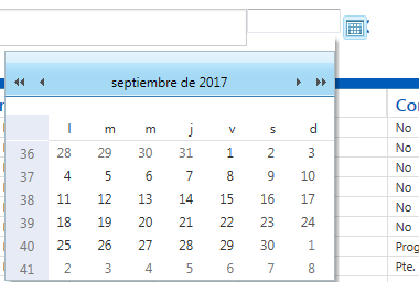 <div class="RadPicker RadPicker_Vista" id="FechaConcesionDatePicker_wrapper" style="width: 95px; display: inline-block; -ms-zoom: 1;"> <input name="FechaConcesionDatePicker" title="Visually hidden input created for functionality purposes." class="rdfd_ radPreventDecorate" id="FechaConcesionDatePicker" style="margin: 0px 0px -1px -1px; padding: 0px; border: 0px currentColor; border-image: none; width: 1px; height: 1px; overflow: hidden; float: right; display: block; visibility: hidden;" type="text" value=""><table class="rcTable rcSingle" style="width: 100%;" cellspacing="0" summary="Table holding date picker control for selection of dates."> <caption style="display: none;"> RadDatePicker </caption><thead style="display: none;"> <tr> <th scope="col">RadDatePicker</th> </tr> </thead><tbody> <tr> <td class="rcInputCell" style="width: 100%;"><span class="riSingle RadInput RadInput_Vista" id="FechaConcesionDatePicker_dateInput_wrapper" style="width: 100%; display: block;"><input name="FechaConcesionDatePicker$dateInput" class="riTextBox riEnabled" id="FechaConcesionDatePicker_dateInput" type="text"><input name="FechaConcesionDatePicker_dateInput_ClientState" id="FechaConcesionDatePicker_dateInput_ClientState" type="hidden" value='{"enabled":true,"emptyMessage":"","validationText":"","valueAsString":"","minDateStr":"1980-01-01-00-00-00","maxDateStr":"2099-12-31-00-00-00","lastSetTextBoxValue":""}' autocomplete="off"></span></td><td><a title="Open the calendar popup." class="rcCalPopup" id="FechaConcesionDatePicker_popupButton" href="#">Open the calendar popup.</a><div id="FechaConcesionDatePicker_calendar_wrapper" style="display: none;"> <table class="RadCalendar RadCalendar_Vista" id="FechaConcesionDatePicker_calendar" cellspacing="0"> <caption> <span style="display: none;">Calendar</span> </caption><thead> <tr> <td class="rcTitlebar"><table cellspacing="0"> <caption> <span style="display: none;">Title and navigation</span> </caption><thead> <tr style="display: none;"> <th scope="col">Title and navigation</th> </tr> </thead><tbody> <tr> <td><a title="<<" class="t-button rcFastPrev" id="FechaConcesionDatePicker_calendar_FNP" href="#"><<</a></td><td><a title="<" class="t-button rcPrev" id="FechaConcesionDatePicker_calendar_NP" href="#"><</a></td><td class="rcTitle" id="FechaConcesionDatePicker_calendar_Title">septiembre de 2017</td><td><a title=">" class="t-button rcNext" id="FechaConcesionDatePicker_calendar_NN" href="#">></a></td><td><a title=">>" class="t-button rcFastNext" id="FechaConcesionDatePicker_calendar_FNN" href="#"><<</a></td> </tr></tbody> </table></td> </tr> </thead><tbody> <tr> <td class="rcMain"><table class="rcMainTable" id="FechaConcesionDatePicker_calendar_Top" cellspacing="0"> <caption> <span style="display: none;">septiembre de 2017</span> </caption><thead> <tr class="rcWeek"> <th class="rcViewSel" scope="col"> </th><th title="lunes" id="FechaConcesionDatePicker_calendar_Top_cs_1" scope="col">l</th><th title="martes" id="FechaConcesionDatePicker_calendar_Top_cs_2" scope="col">m</th><th title="miércoles" id="FechaConcesionDatePicker_calendar_Top_cs_3" scope="col">m</th><th title="jueves" id="FechaConcesionDatePicker_calendar_Top_cs_4" scope="col">j</th><th title="viernes" id="FechaConcesionDatePicker_calendar_Top_cs_5" scope="col">v</th><th title="sábado" id="FechaConcesionDatePicker_calendar_Top_cs_6" scope="col">s</th><th title="domingo" id="FechaConcesionDatePicker_calendar_Top_cs_7" scope="col">d</th> </tr> </thead><tbody> <tr class="rcRow"> <th id="FechaConcesionDatePicker_calendar_Top_rs_1" scope="row">36</th><td title="lunes, agosto 28, 2017" class="rcOtherMonth"><a href="#">28</a></td><td title="martes, agosto 29, 2017" class="rcOtherMonth"><a href="#">29</a></td><td title="miércoles, agosto 30, 2017" class="rcOtherMonth"><a href="#">30</a></td><td title="jueves, agosto 31, 2017" class="rcOtherMonth"><a href="#">31</a></td><td title="viernes, septiembre 01, 2017"><a href="#">1</a></td><td title="sábado, septiembre 02, 2017" class="rcWeekend"><a href="#">2</a></td><td title="domingo, septiembre 03, 2017" class="rcWeekend"><a href="#">3</a></td> </tr><tr class="rcRow"> <th id="FechaConcesionDatePicker_calendar_Top_rs_2" scope="row">37</th><td title="lunes, septiembre 04, 2017"><a href="#">4</a></td><td title="martes, septiembre 05, 2017"><a href="#">5</a></td><td title="miércoles, septiembre 06, 2017"><a href="#">6</a></td><td title="jueves, septiembre 07, 2017"><a href="#">7</a></td><td title="viernes, septiembre 08, 2017"><a href="#">8</a></td><td title="sábado, septiembre 09, 2017" class="rcWeekend"><a href="#">9</a></td><td title="domingo, septiembre 10, 2017" class="rcWeekend"><a href="#">10</a></td> </tr><tr class="rcRow"> <th id="FechaConcesionDatePicker_calendar_Top_rs_3" scope="row">38</th><td title="lunes, septiembre 11, 2017"><a href="#">11</a></td><td title="martes, septiembre 12, 2017"><a href="#">12</a></td><td title="miércoles, septiembre 13, 2017"><a href="#">13</a></td><td title="jueves, septiembre 14, 2017"><a href="#">14</a></td><td title="viernes, septiembre 15, 2017"><a href="#">15</a></td><td title="sábado, septiembre 16, 2017" class="rcWeekend"><a href="#">16</a></td><td title="domingo, septiembre 17, 2017" class="rcWeekend"><a href="#">17</a></td> </tr><tr class="rcRow"> <th id="FechaConcesionDatePicker_calendar_Top_rs_4" scope="row">39</th><td title="lunes, septiembre 18, 2017"><a href="#">18</a></td><td title="martes, septiembre 19, 2017"><a href="#">19</a></td><td title="miércoles, septiembre 20, 2017"><a href="#">20</a></td><td title="jueves, septiembre 21, 2017"><a href="#">21</a></td><td title="viernes, septiembre 22, 2017"><a href="#">22</a></td><td title="sábado, septiembre 23, 2017" class="rcWeekend"><a href="#">23</a></td><td title="domingo, septiembre 24, 2017" class="rcWeekend"><a href="#">24</a></td> </tr><tr class="rcRow"> <th id="FechaConcesionDatePicker_calendar_Top_rs_5" scope="row">40</th><td title="lunes, septiembre