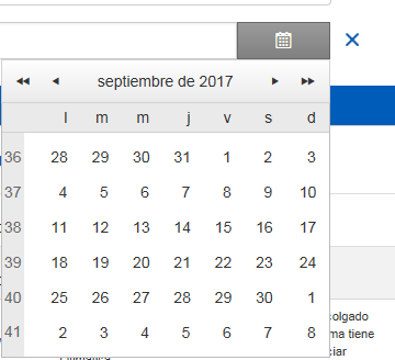 <div class="RadPicker RadPicker_Default" id="FechaConcesionDatePicker_wrapper" style="width: 95px;"><br> <input name="FechaConcesionDatePicker" title="Visually hidden input created for functionality purposes." class="rdfd_ radPreventDecorate" id="FechaConcesionDatePicker" style="margin: 0px 0px -1px -1px; padding: 0px; border: 0px currentColor; border-image: none; width: 1px; height: 1px; overflow: hidden; float: right; display: block; visibility: hidden;" type="text" value=""><div class="RadInput RadInput_Default" id="FechaConcesionDatePicker_dateInput_wrapper"><br> <input name="FechaConcesionDatePicker$dateInput" class="riTextBox riEnabled" id="FechaConcesionDatePicker_dateInput" type="text"><div class="rcSelect"><br> <a title="Open the calendar popup." class="rcCalPopup" id="FechaConcesionDatePicker_popupButton" href="#"></a><div class="RadCalendar RadCalendar_Default" id="FechaConcesionDatePicker_calendar" style="display: none;"><br> <div class="rcTitlebar"><br> <a title="<<" class="t-button rcFastPrev" id="FechaConcesionDatePicker_calendar_FNP" href="#"><span class="t-font-icon t-i-arrow-double-60-left"></span></a><a title="<" class="t-button rcPrev" id="FechaConcesionDatePicker_calendar_NP" href="#"><span class="t-font-icon t-i-arrow-left"></span></a><div class="rcNextButtons"><br> <a title=">" class="t-button rcNext" id="FechaConcesionDatePicker_calendar_NN" href="#"><span class="t-font-icon t-i-arrow-right"></span></a><a title=">>" class="t-button rcFastNext" id="FechaConcesionDatePicker_calendar_FNN" href="#"><span class="t-font-icon t-i-arrow-double-60-right"></span></a><br> </div><span class="rcTitle" id="FechaConcesionDatePicker_calendar_Title">septiembre de 2017</span><br> </div><div class="rcMain"><br> <table class="rcMainTable" id="FechaConcesionDatePicker_calendar_Top"><br> <caption><br> <span style="display: none;">septiembre de 2017</span><br> </caption><thead><br> <tr class="rcWeek"><br> <th class="rcViewSel" scope="col"> </th><th title="lunes" id="FechaConcesionDatePicker_calendar_Top_cs_1" scope="col">l</th><th title="martes" id="FechaConcesionDatePicker_calendar_Top_cs_2" scope="col">m</th><th title="miércoles" id="FechaConcesionDatePicker_calendar_Top_cs_3" scope="col">m</th><th title="jueves" id="FechaConcesionDatePicker_calendar_Top_cs_4" scope="col">j</th><th title="viernes" id="FechaConcesionDatePicker_calendar_Top_cs_5" scope="col">v</th><th title="sábado" id="FechaConcesionDatePicker_calendar_Top_cs_6" scope="col">s</th><th title="domingo" id="FechaConcesionDatePicker_calendar_Top_cs_7" scope="col">d</th><br> </tr><br> </thead><tbody><br> <tr class="rcRow"><br> <th id="FechaConcesionDatePicker_calendar_Top_rs_1" scope="row">36</th><td title="lunes, agosto 28, 2017" class="rcOtherMonth"><a href="#">28</a></td><td title="martes, agosto 29, 2017" class="rcOtherMonth"><a href="#">29</a></td><td title="miércoles, agosto 30, 2017" class="rcOtherMonth"><a href="#">30</a></td><td title="jueves, agosto 31, 2017" class="rcOtherMonth"><a href="#">31</a></td><td title="viernes, septiembre 01, 2017"><a href="#">1</a></td><td title="sábado, septiembre 02, 2017" class="rcWeekend"><a href="#">2</a></td><td title="domingo, septiembre 03, 2017" class="rcWeekend"><a href="#">3</a></td><br> </tr><tr class="rcRow"><br> <th id="FechaConcesionDatePicker_calendar_Top_rs_2" scope="row">37</th><td title="lunes, septiembre 04, 2017"><a href="#">4</a></td><td title="martes, septiembre 05, 2017"><a href="#">5</a></td><td title="miércoles, septiembre 06, 2017"><a href="#">6</a></td><td title="jueves, septiembre 07, 2017"><a href="#">7</a></td><td title="viernes, septiembre 08, 2017"><a href="#">8</a></td><td title="sábado, septiembre 09, 2017" class="rcWeekend"><a href="#">9</a></td><td title="domingo, septiembre 10, 2017" class="rcWeekend"><a href="#">10</a></td><br> </tr><tr class="rcRow"><br> <th id="FechaConcesionDatePicker_calendar_Top_rs_3" scope="row">38</th><td title="lunes, septiembre 11, 2017"><a href="#">11</a></td><td title="martes, septiembre 12, 2017"><a href="#">12</a></td><td title="miércoles, septiembre 13, 2017"><a href="#">13</a></td><td title="jueves, septiembre 14, 2017"><a href="#">14</a></td><td title="viernes, septiembre 15, 2017"><a href="#">15</a></td><td title="sábado, septiembre 16, 2017" class="rcWeekend"><a href="#">16</a></td><td title="domingo, septiembre 17, 2017" class="rcWeekend"><a href="#">17</a></td><br> </tr><tr class="rcRow"><br> <th id="FechaConcesionDatePicker_calendar_Top_rs_4" scope="row">39</th><td title="lunes, septiembre 18, 2017"><a href="#">18</a></td><td title="martes, septiembre 19, 2017"><a href="#">19</a></td><td title="miércoles, septiembre 20, 2017"><a href="#">20</a></td><td title="jueves, septiembre 21, 2017"><a href="#">21</a></td><td title="viernes, septiembre 22, 2017"><a href="#">22</a></td><td title="sábado, septiembre 23, 2017" class="rcWeekend"><a href="#">23</a></td><td title="domingo, septiembre 24, 2017" class="rcWeekend"><a href="#">24</a></td><br> </tr><tr class="rcRow"><br> <th id="FechaConcesionDatePicker_calendar_Top_rs_5" scope="row">40</th><td title="lunes, septiembre 25, 2017"><a href="#">25</a></td><td title="martes, septiembre 26, 2017"><a href="#">26</a></td><td title="miércoles, septiembre 27, 2017"><a href="#">27</a></td><td title="jueves, septiembre 28, 2017"><a href="#">28</a></td><td title="viernes, septiembre 29, 2017"><a href="#">29</a></td><td title="sábado, septiembre 30, 2017" class="rcWeekend"><a href="#">30</a></td><td title="domingo, octubre 01, 2017" class="rcOtherMonth"><a href="#">1</a></td><br> </tr><tr class="rcRow"><br> <th id="FechaConcesionDatePicker_calendar_Top_rs_6" scope="row">41</th><td title="lunes, octubre 02, 2017" class="rcOtherMonth"><a href="#">2</a></td><td title="martes, octubre 03, 2017" class="rcOtherMonth"><a href="#">3</a></td><td title="miércoles, octubre 04, 2017" class="rcOtherMonth"><a href="#">4</a></td><td title="jueves, octubre 05, 2017" class="rcOtherMon
