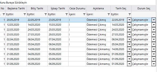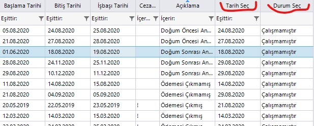 The datetime column and combobox column initially look like any other text column. However, once you click on them, a small triangle appears on their right.