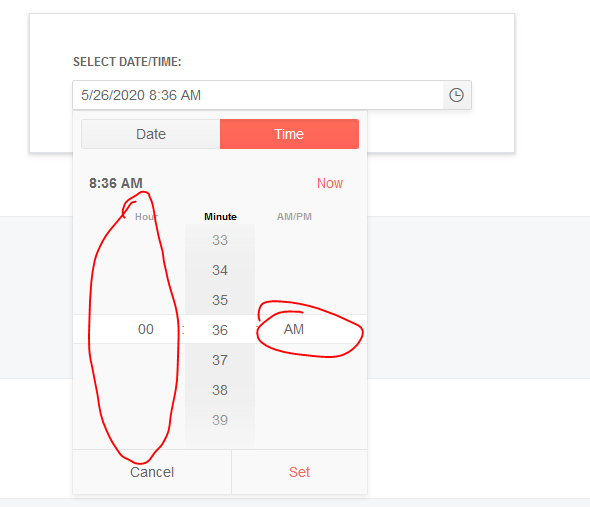 Is this a bug? or is there something you need to do to allow picking of hours?