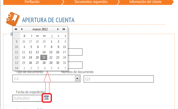 <DateInput ID="DateInput1" runat="server" Width="150px" DateFormat="dd/MM/yyyy" DisplayDateFormat="dd/MM/yyyy" ToolTip="Seleccionar fecha en calendario" ></DateInput> <DatePopupButton ImageUrl="/Formulario/icons/calendar.png" HoverImageUrl="/Formulario/icons/calendar.png" /> </telerik:RadDatePicker> <asp:Label ID="P5lblP5textfield4" class="input01e" runat="server" Text="Ingrese Fecha de expedición" ForeColor="Red" Visible="false"></asp:Label><br /> <br />