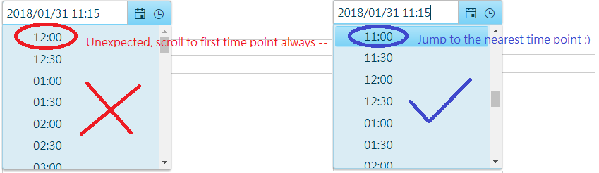 2018/01/31 14:00 (User dropdown the select the day - 31 but minutes lost unexpectedly)